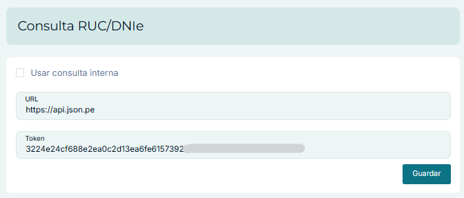 Accedemos como administrador en nuestro sistema: Inicia sesión utilizando tus credenciales de administrador. Este acceso es necesario para realizar configuraciones avanzadas. Una vez dentro, debes ir a la sección Configuración para configurar la API. Agrega tus credenciales en Consulta RUC/DNIURL: